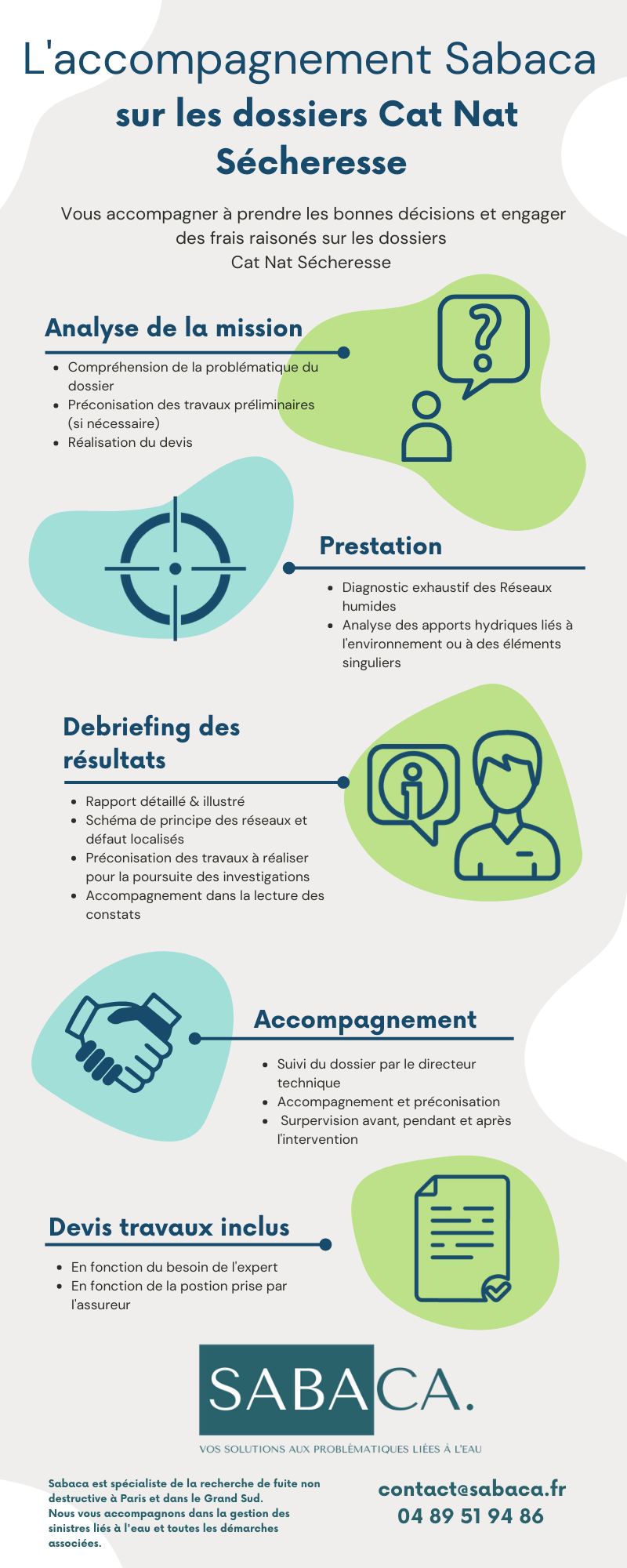 accompagnement Sabaca dans les dossiers (supposés) Catastrophe Naturelle Sécheress se décompose en 3 étapes pour les experts d'assurance.